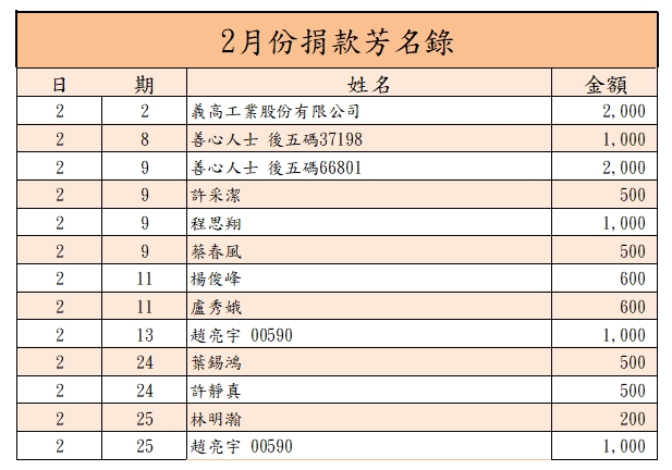 衷心感謝您的慷慨捐款及對台中市腦性麻痺關懷協會的支持。成就的背後都離不開像您這樣的愛心捐款人。深知您的每一分捐款都是一份信任和期望,這也是我們不斷努力的動力。