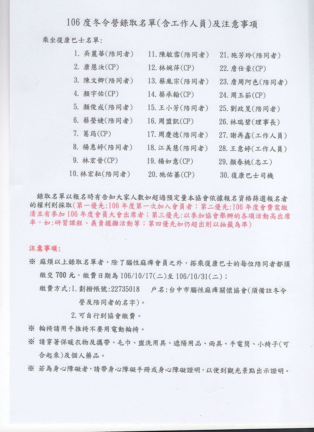 麻煩有錄取者(陪同者、工作人員、理事長、志工)