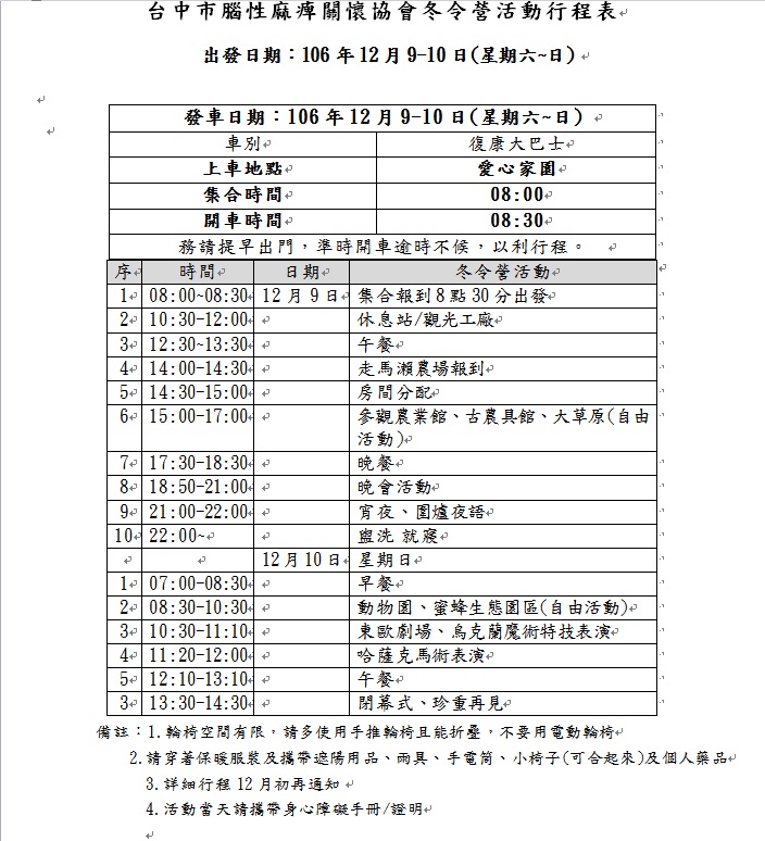 二.活動日期:106年12月9~10日(星期六~日)2天