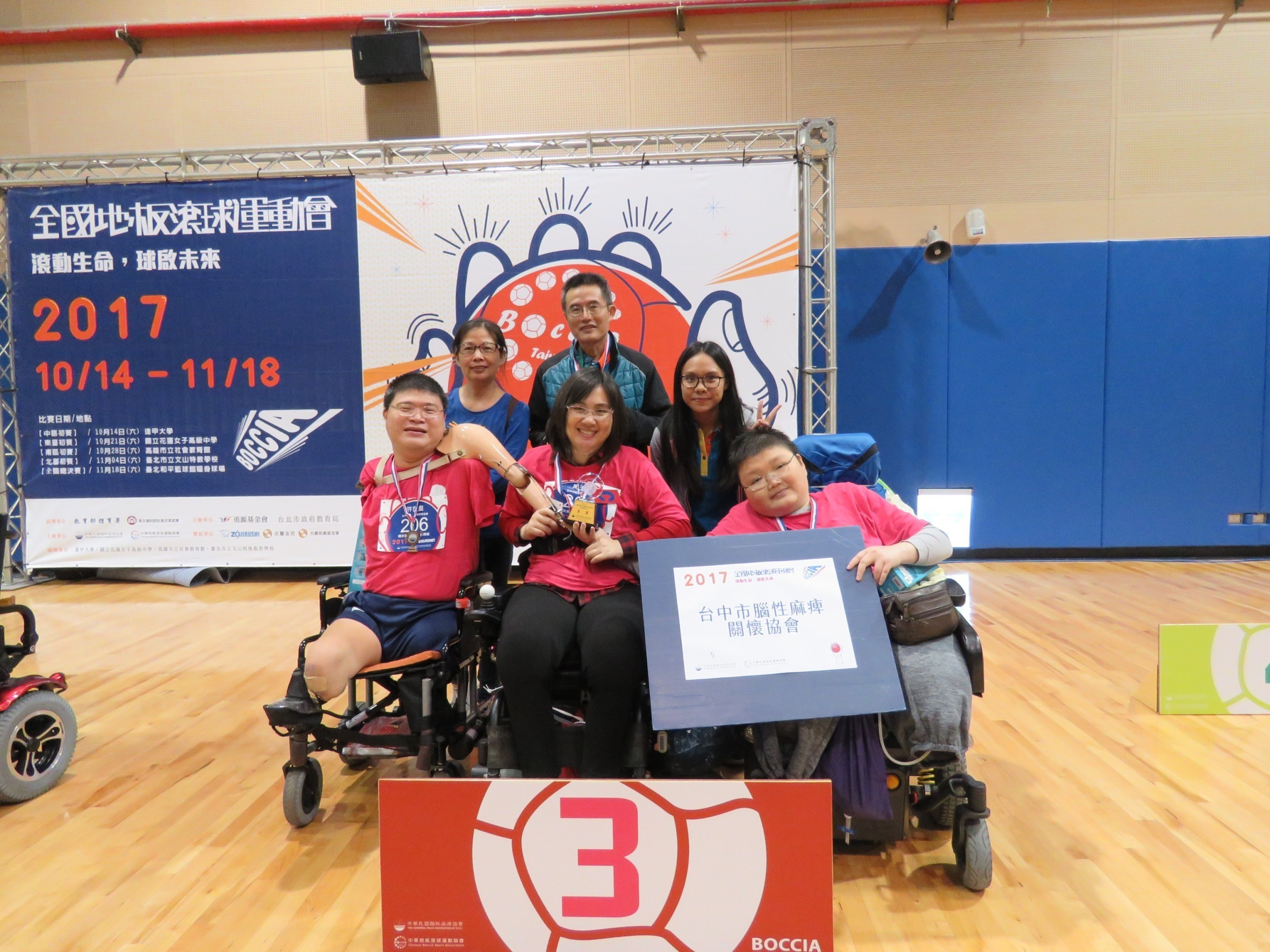 感謝這次參與11/18(六)全國地板滾球總決賽的選手們(O茹、O皇、O銘)、巫老師、石老師以及陪同出席的家長、朋友,你們辛苦了,平常的訓練及老師的教導之下,讓我們協會隊伍榮獲全國肢體障礙 第三名,成績不錯!! |
