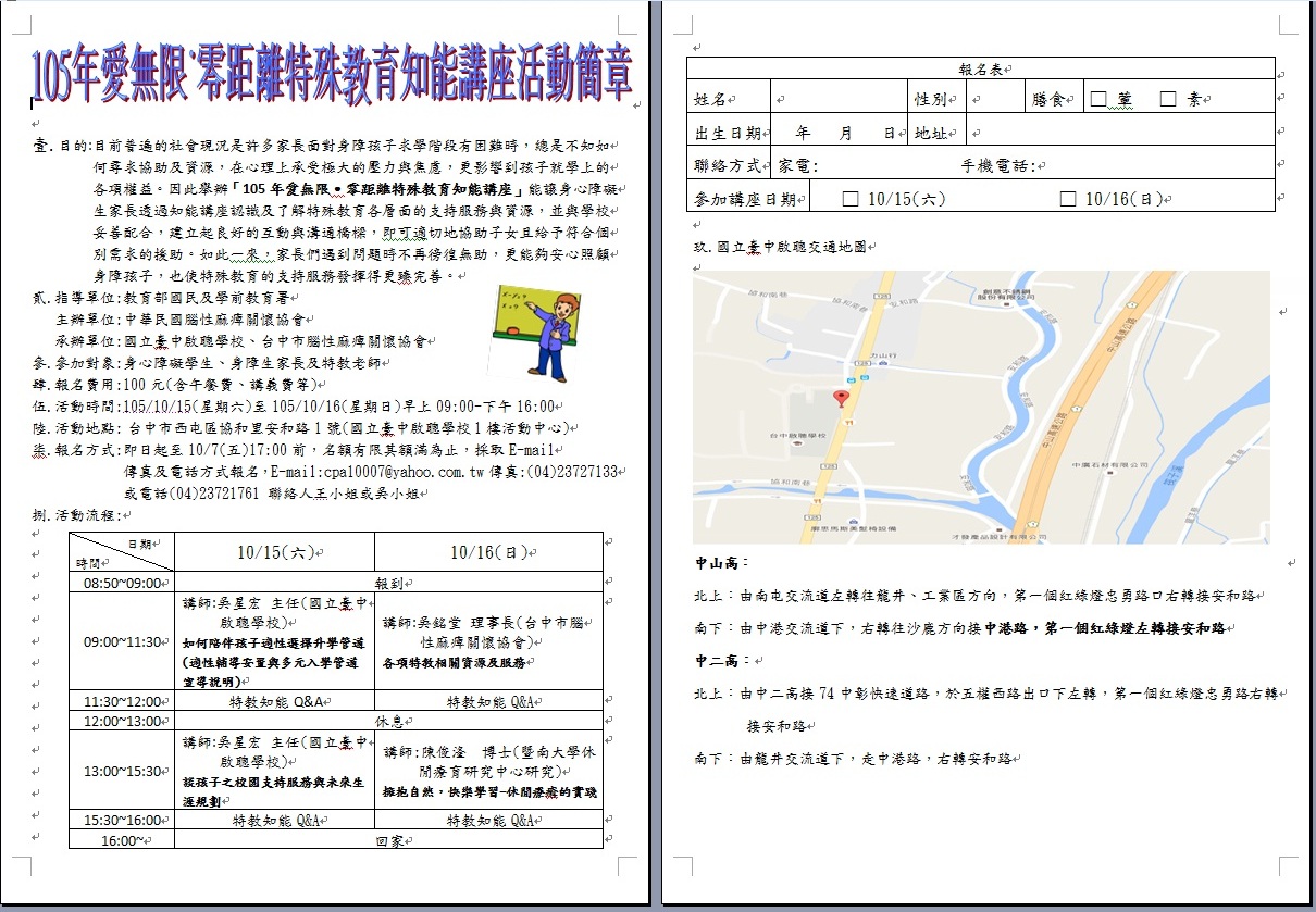 活動地址:台中市西屯區協和里安和路1號(國立臺中啟聰學校1樓活
