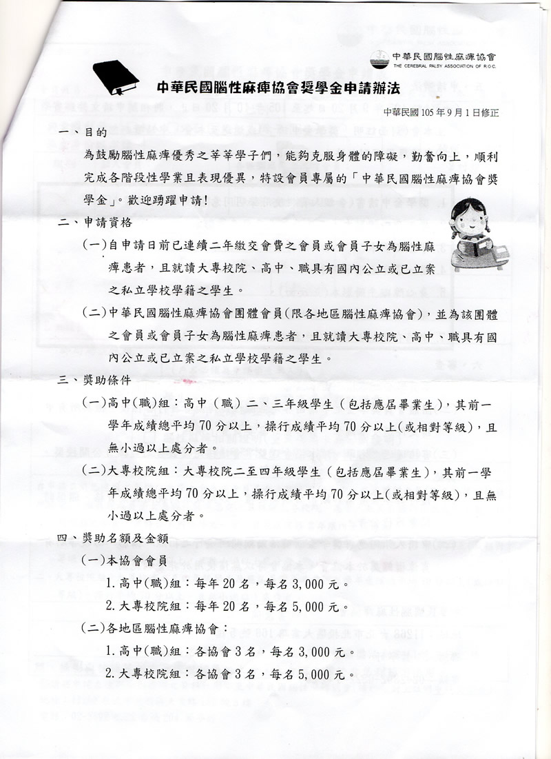 105年中華民國腦性麻痺關懷協會獎學金
