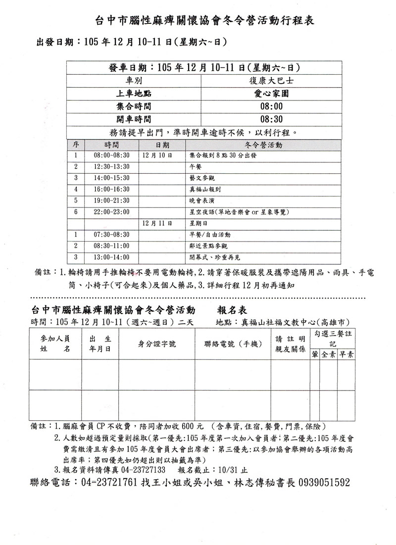 105年台中腦性麻痺冬令營活動