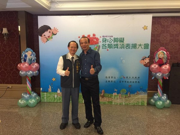 恭喜王鈞弘會員榮獲台中市傑出身心障礙者獎項並參加表揚大會秘書長及鈞弘全家皆參與大會大家都與有榮焉 |