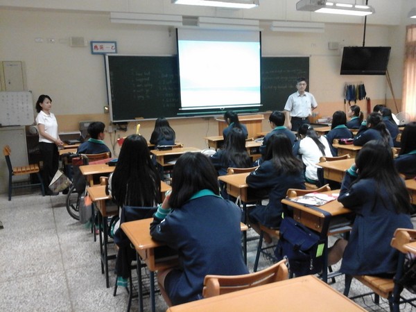 由何淑萍老師前往應英一乙班級腦麻宣導精闢演講全班學生都認真聽講 |
