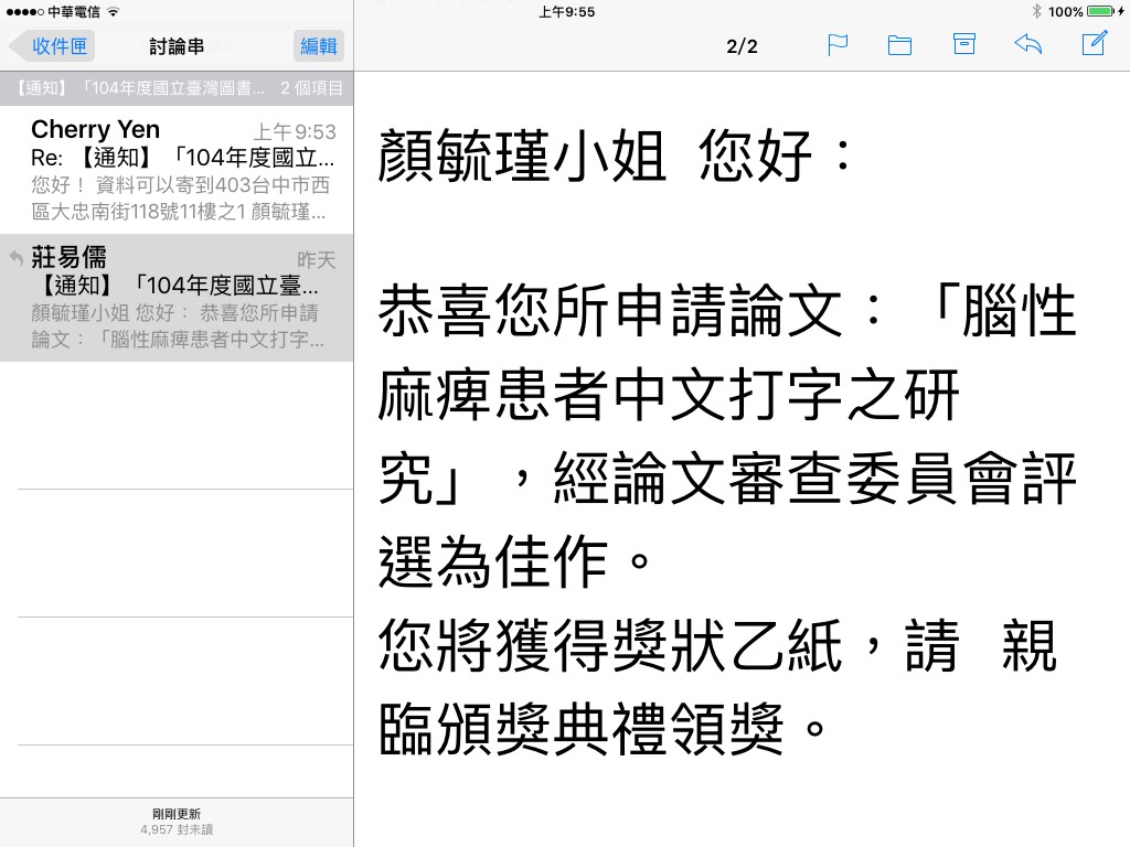 恭喜毓瑾理事榮獲國家圖書館的佳作獎項