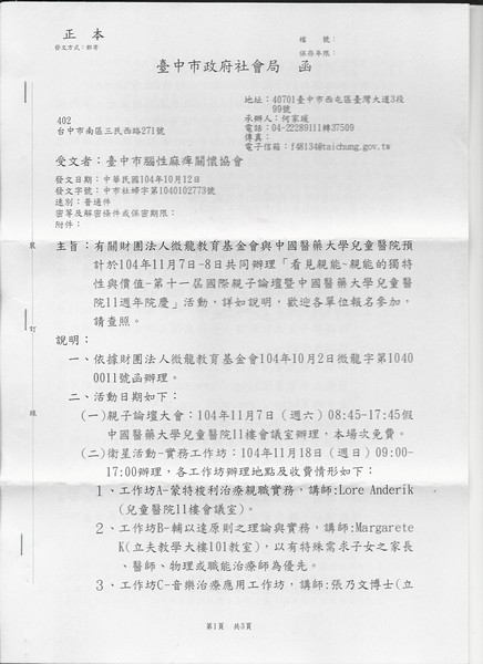 10/4假美術園道全國腦麻大會師活動圓滿成功 |