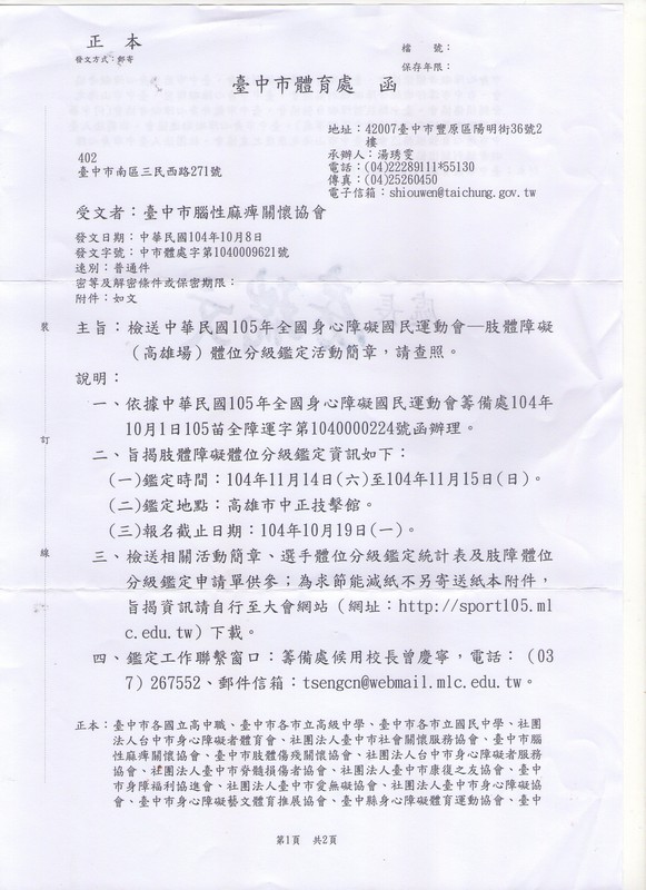 提醒大家參加10/4一台輪椅凸台灣的會員集合地點是五權西路一段的國立美術館不要跑錯地方了謝謝