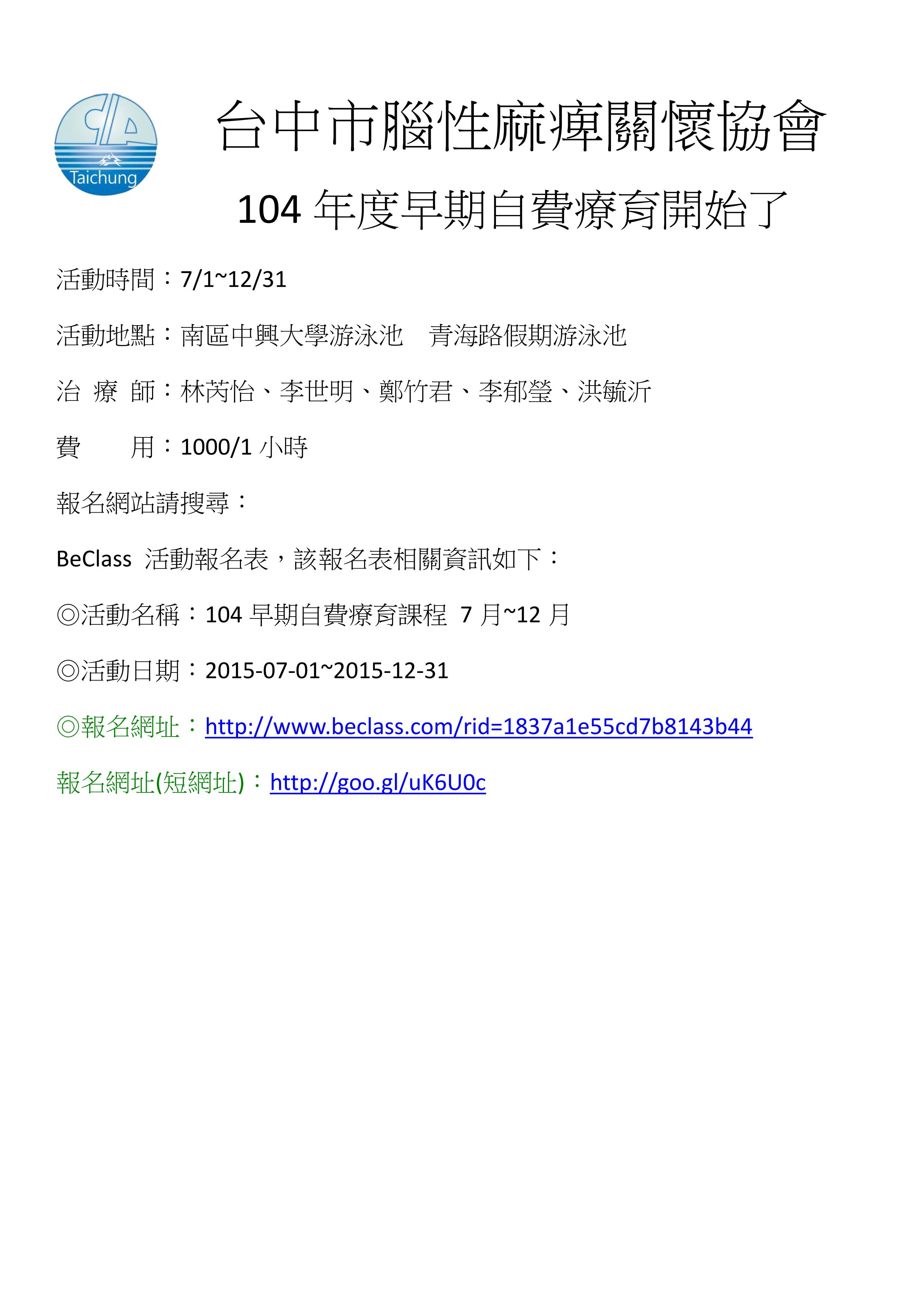 郵政劃撥:22735018 台中市腦性麻痺關懷協會 |