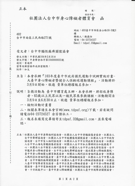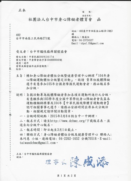 104年身心障礙運動體味分及鑑定滑動開始了請參加選受務必前往鑑定