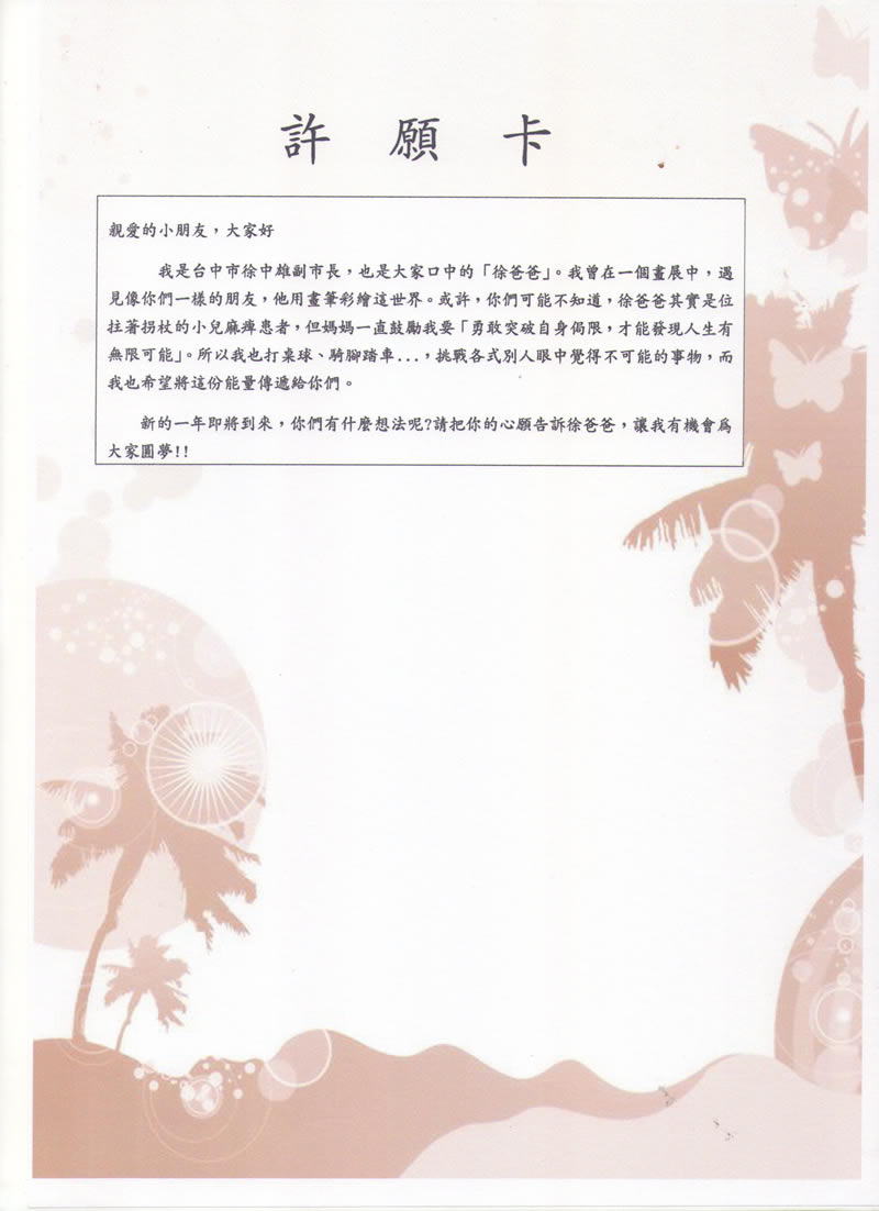 徐副市長來信,希望收集小朋友的心願