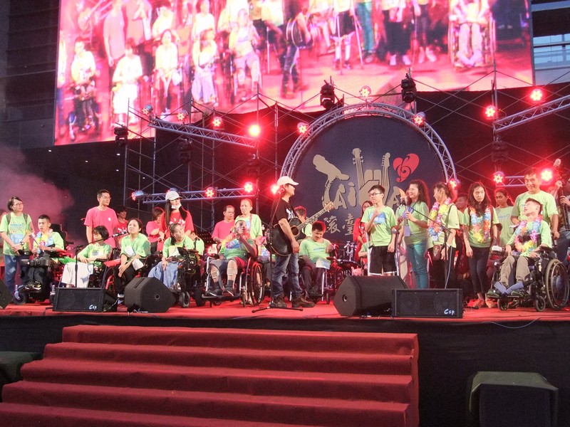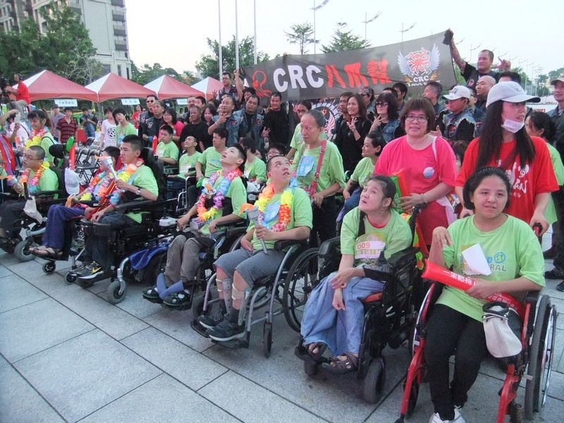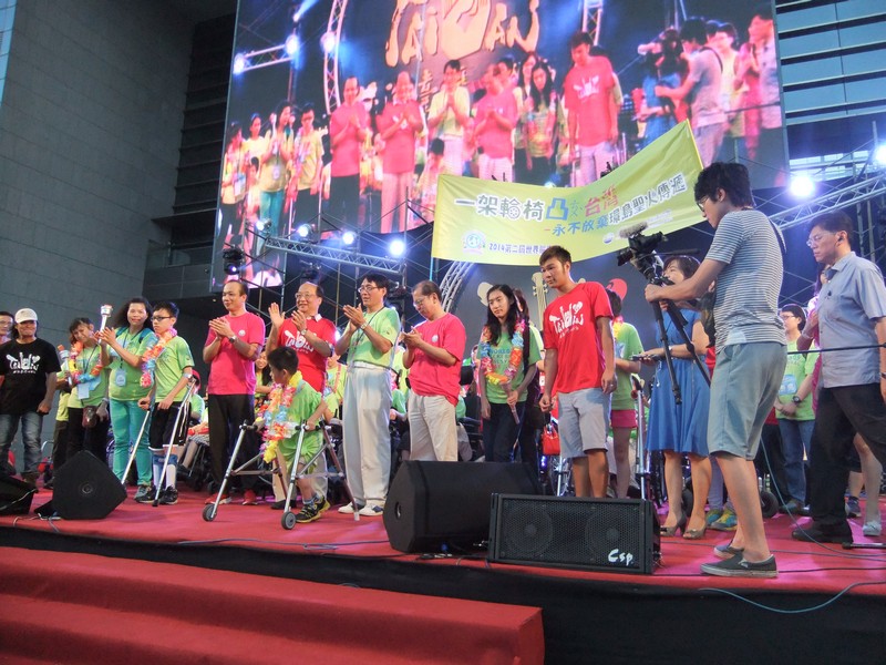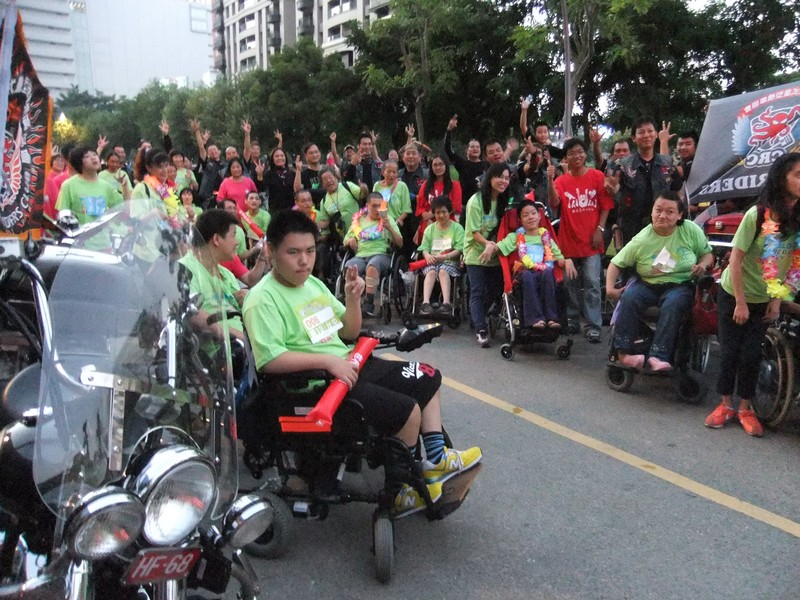 20140927一輪椅凸台灣日期:2014-09-27永不放棄環島聖火傳遞,感謝中華民國腦麻協會的策劃執行,感謝台中熊肯作服務團隊及張羽偉老師的,【搖滾台灣心感動】,貴人相助,更感謝胡市長為參與的腦麻兒親自掛上花環致詞,而社會局廖副局長,更是全程參與聆聽演唱會,顯示市政府的重視此次活動,而30台重機的前導也令我們為他們喝采,加上參與的台北和台中來的腦麻兒從白天到黑夜,更是令人感動,為這群走入人群結好緣的輪椅勇士拍手讚美‧ |