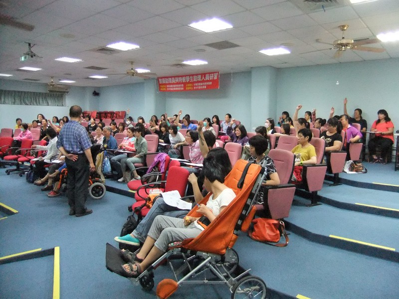 5/2教師助理員第三次上課,由張素梅老師講生活自理的協助與訓練及吳銘堂老師的擺位移位技巧與實際演練參與學員踴躍,老師上課演練到位,課後的回饋單更是踴躍交出令承辦人員足甘心