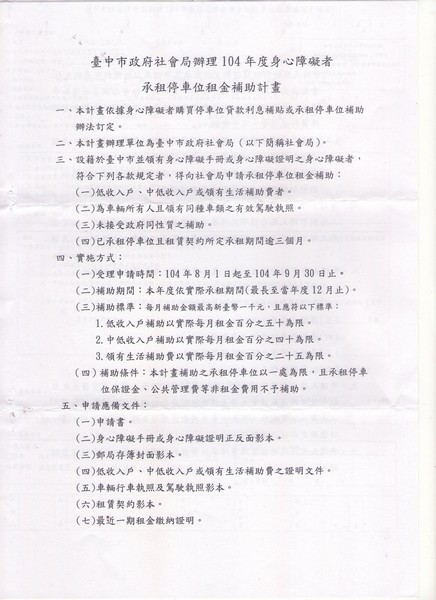 身心障礙者承租停車位租金補助