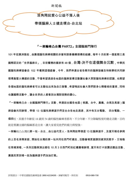 『一架輪椅凸台灣PART2』全國腦麻鬥陣行