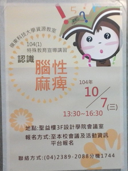 9/16清水西寧國小學生宣導林豐隆老師擔綱 10/7嶺東科大資源班老師宣導何淑萍老師擔綱