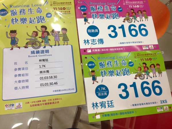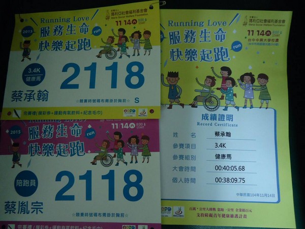 11/14中興大學奈米馬1.75KM快樂起跑,本會會員4人參加