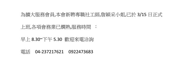 新任社工師詹穎采 0922473683 歡迎洽詢