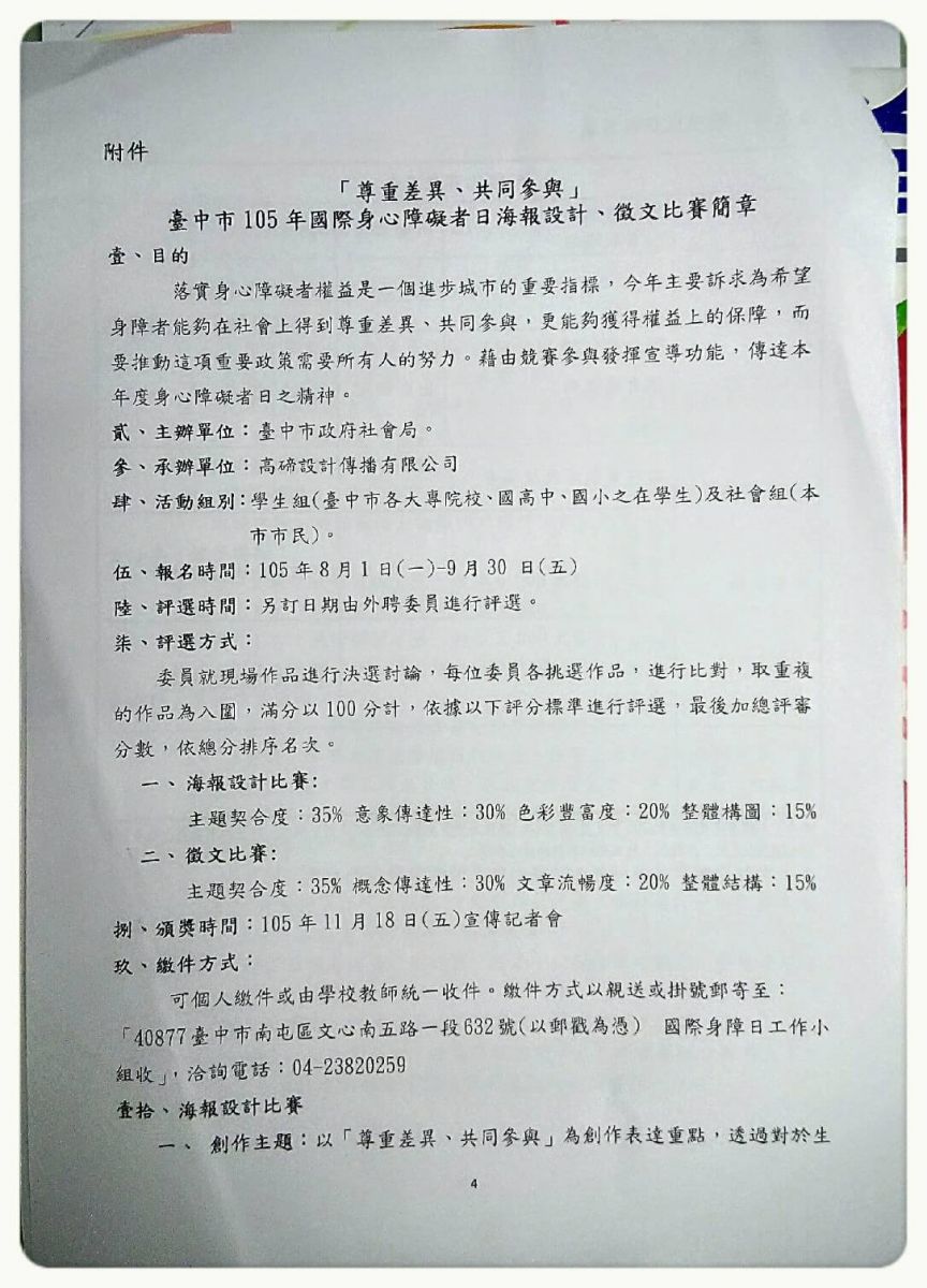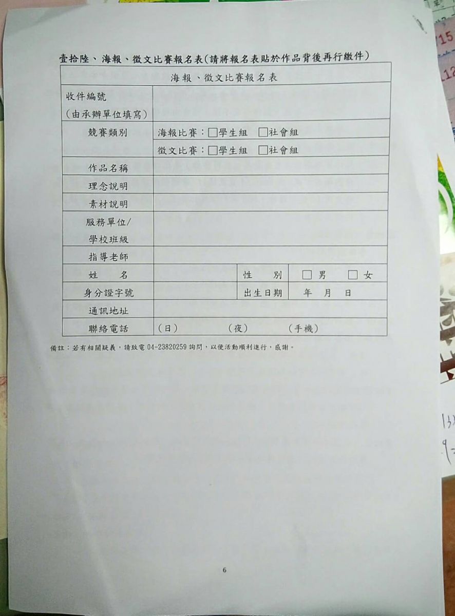 報名時間:105/8/1~105/9/30 活動組別:學生組,社會組 繳件方式:1.親送2.掛號台中市南屯區文心南五路一段632號