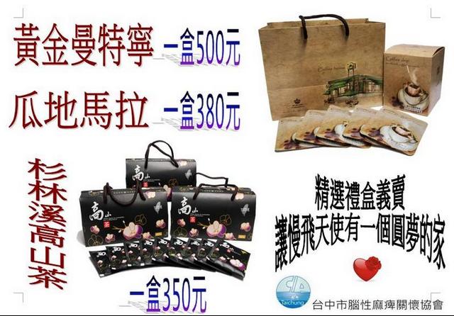 精選咖啡、茶葉禮盒義賣!!日期:2016-09-09請讓慢飛天使有一個圓夢的家 在這裡學習、成長 找到前往自力更生的道路 他們需要社會大眾的支持 期待社會的關心與幫助.... 訂購專線:04-23721761 劃撥帳號: 22735018 |