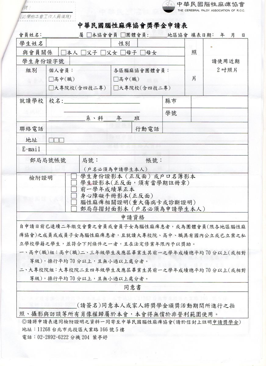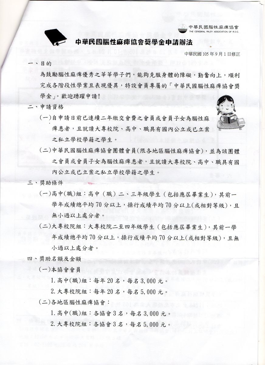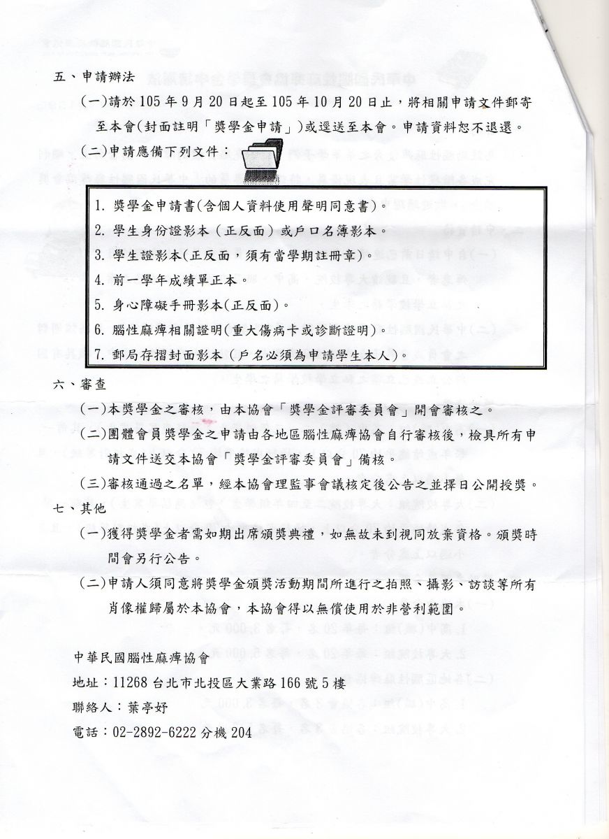 申請時間:105年9月20日至105年10月20日 申請資格請詳看以下照片中的獎助學金申請辦法