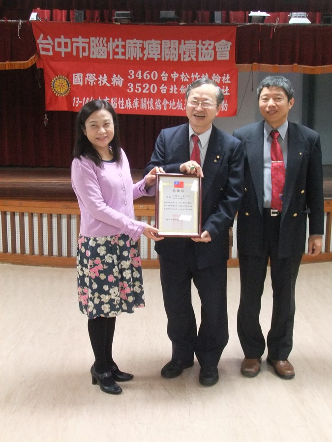 台中松竹&台北劍潭扶輪社&3460地區1314年度總監辦事處,一齊捐款給本會幫助腦麻兒,謝謝社友的愛心,一燈照亮千年暗,愛心無遠弗屆