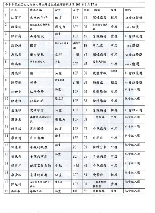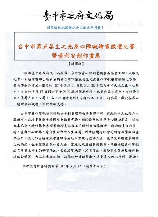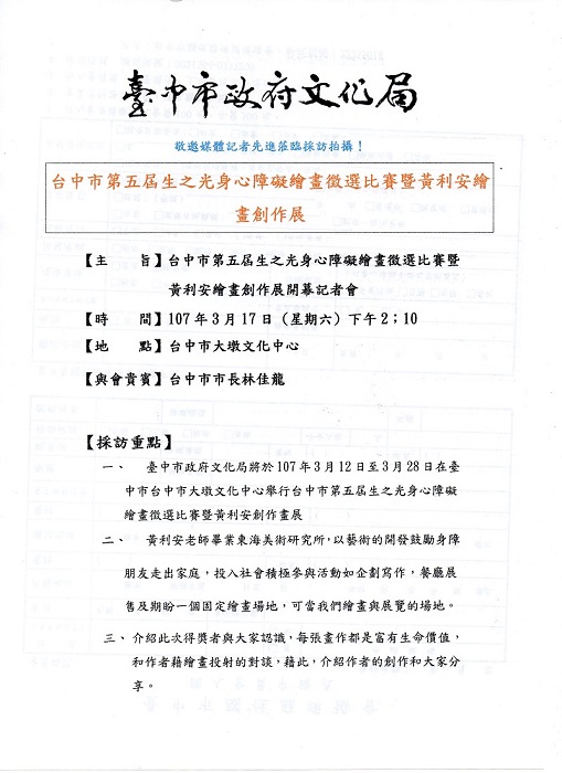 台中市第五屆生之光身心障礙繪畫徵選比賽暨黃利安繪畫創作展開幕記者會
