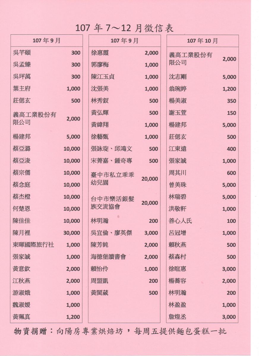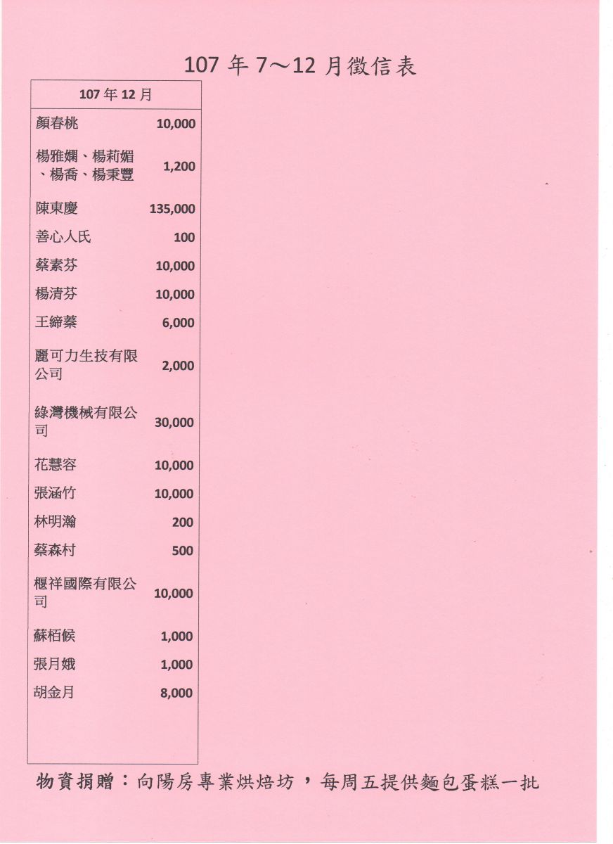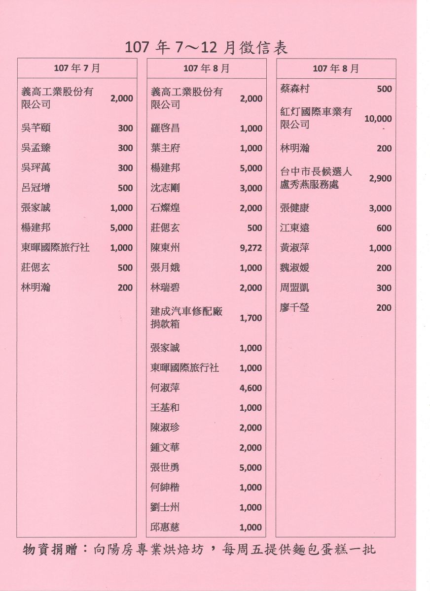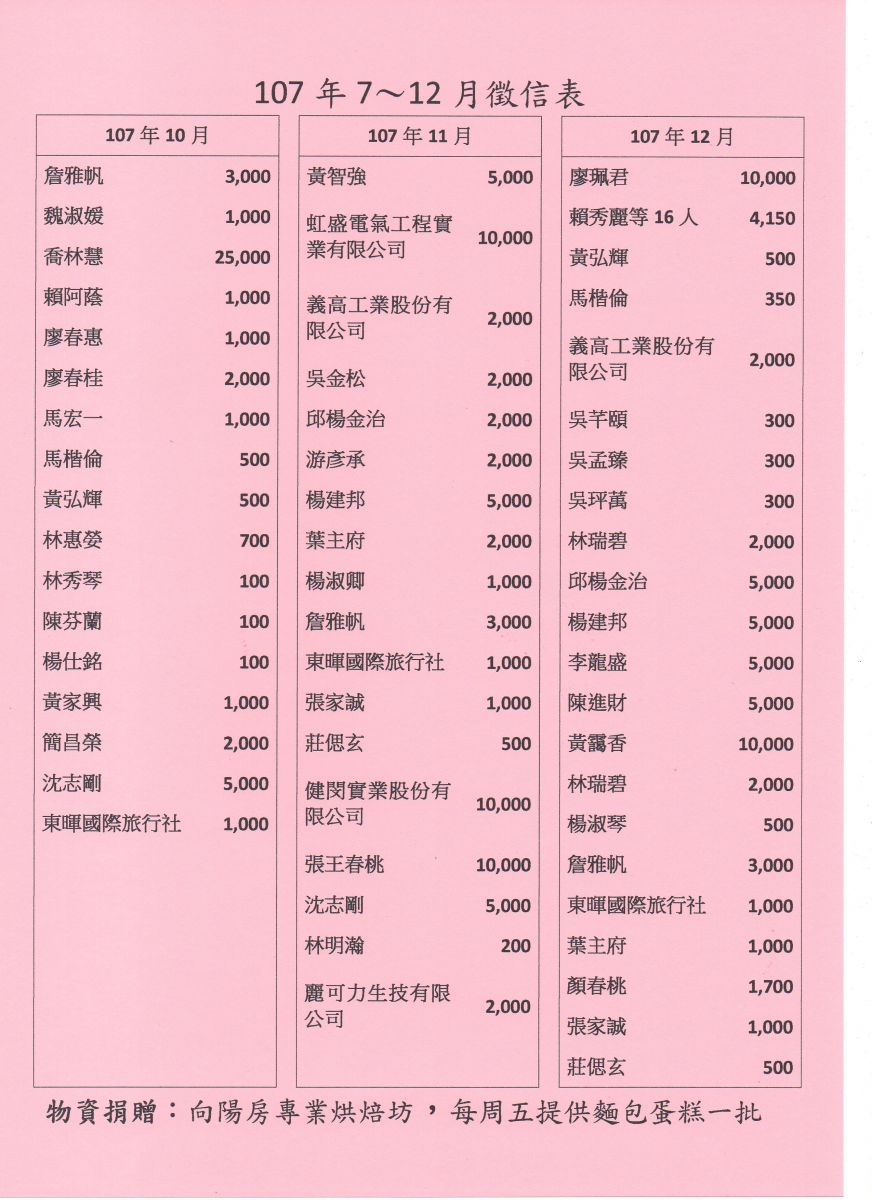 107年7-12月捐款徵信