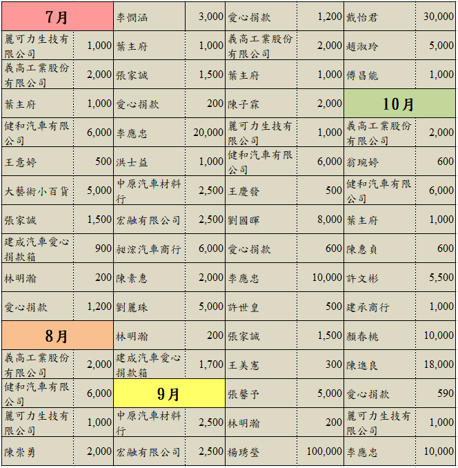 110年7-12月捐款徵信