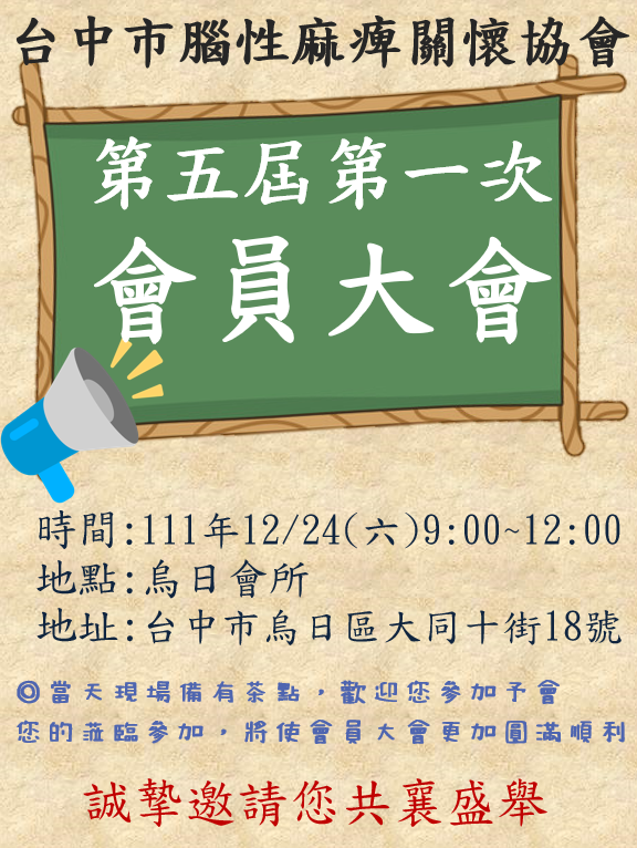 《111年度台中腦麻會員大會通知》
