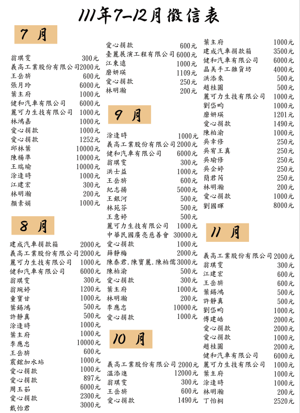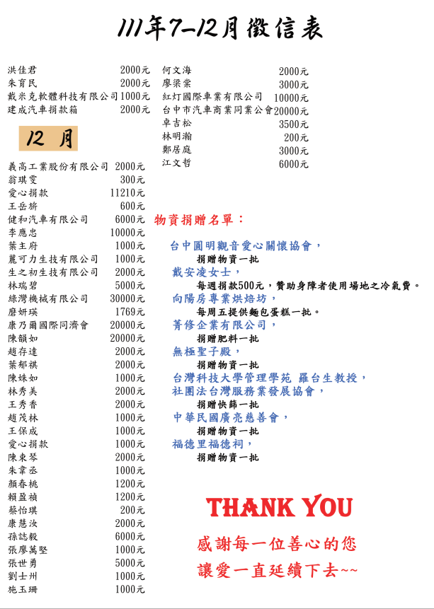 111年 7-12月 捐款徵信日期:2023-01-16 |