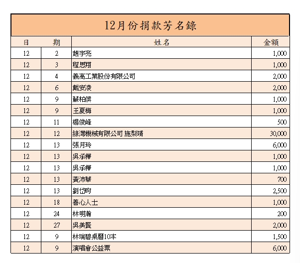 衷心感謝您的慷慨捐款及對台中市腦性麻痺關懷協會的支持。成就的背後都離不開像您這樣的愛心捐款人。深知您的每一分捐款都是一份信任和期望,這也是我們不斷努力的動力。