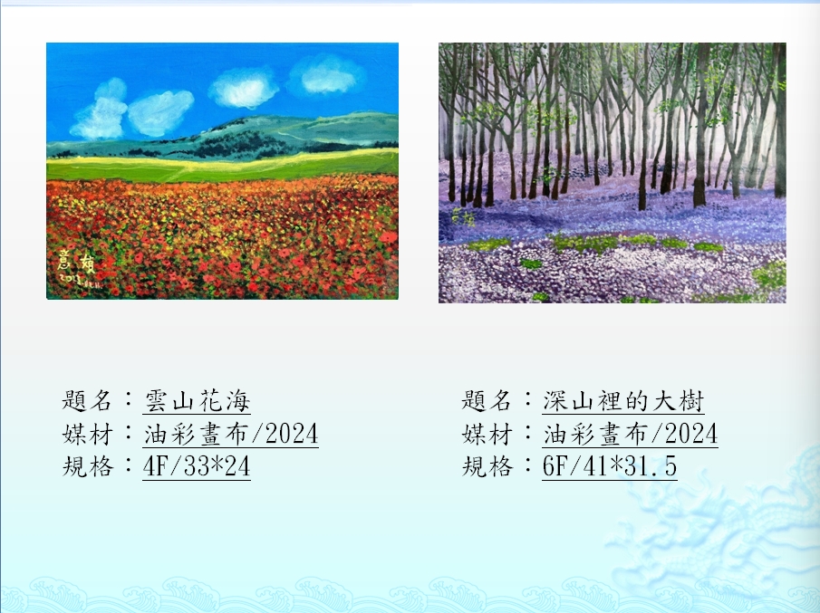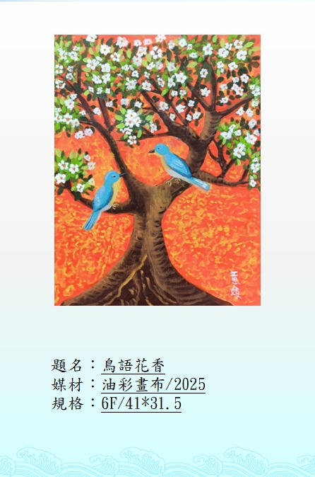 曾意媜 YI-CHEN TSENG 作品欣賞日期:2025-03-28慢慢走,也能走出自己的光,畫畫日常顏色是她的語言,筆觸是她的笑容喜歡畫花朵、風景、小動物和帶來希望的事物,畫風溫柔、誠懇,像一首靜靜唱的歌,讓人感到平靜與力量。 |