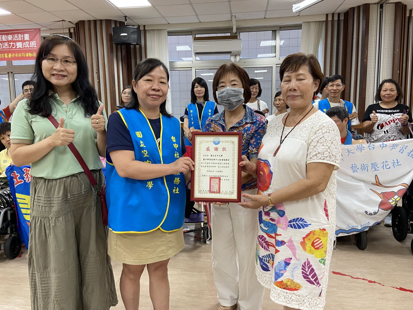 社會服務社隸屬台中學習指導中心,秉持「人飢己飢、人溺己溺」的精神, 國立空中大學臺中學習指導中心 社會服務社 暨全體參與 本會謹致上最誠摯的謝意,感謝貴單位於日前蒞臨本會進行關懷服務, 對於貴單位秉持社會服務精神,主動關懷弱勢族群之義行,本會深感敬佩。 |