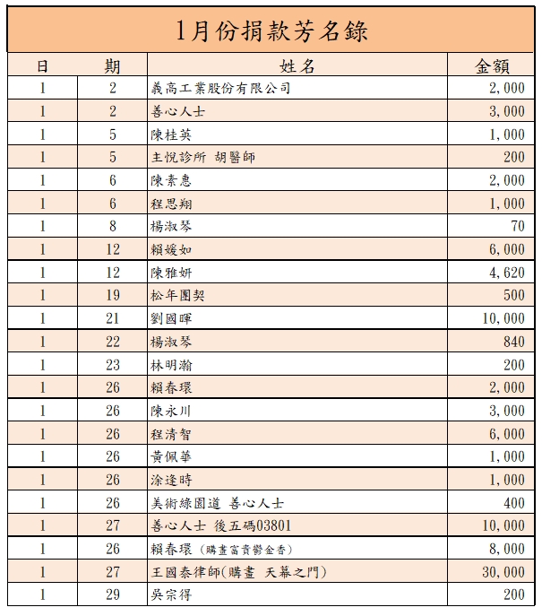 115年1月樂捐經費芳名錄