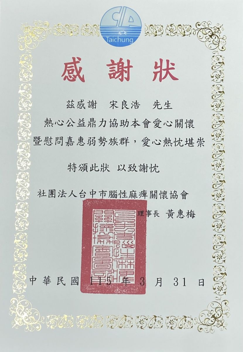 愛心傳遞,樂音飄揚|感謝瑞揚創意有限公司惠伶姐慷慨解囊日期:2026-04-07本會誠摯感謝 瑞揚創意有限公司 惠伶姐 的溫暖善舉! |