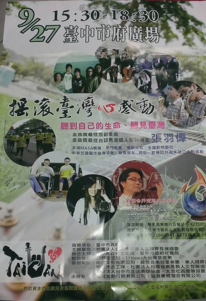9/27台中市政府廣場邀您參加一台輪椅凸台灣及搖滾台灣心感動演唱會