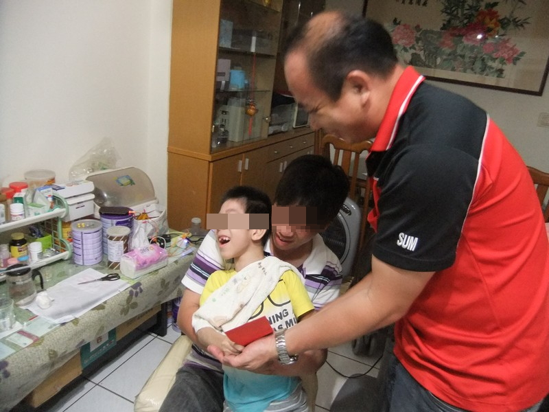 秘書長晚上前往關懷大里腦麻兒贈送安素24罐及慰問金